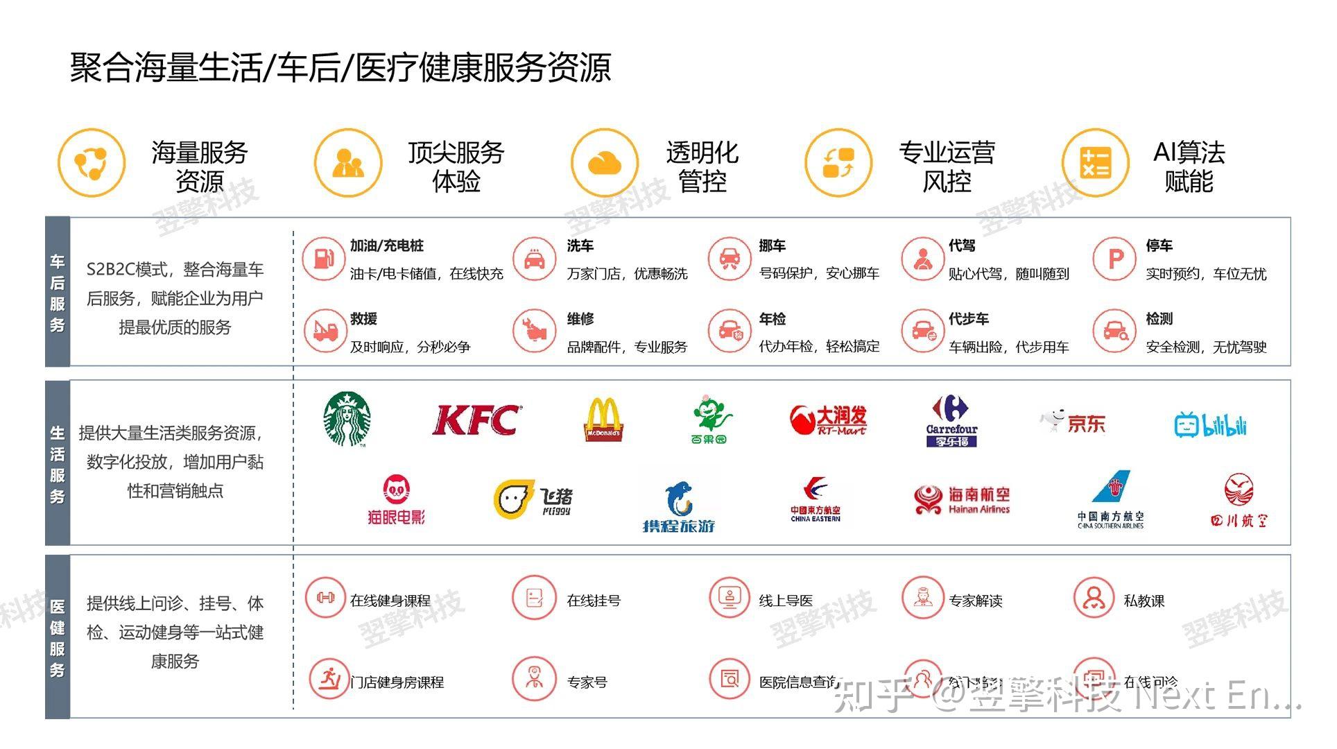 翌擎可聚合海量服务商资源,通过有效管理和生态联动,赋能车企为用户提供优质增值服务,增加用户营销触点,增强用户品牌粘性。